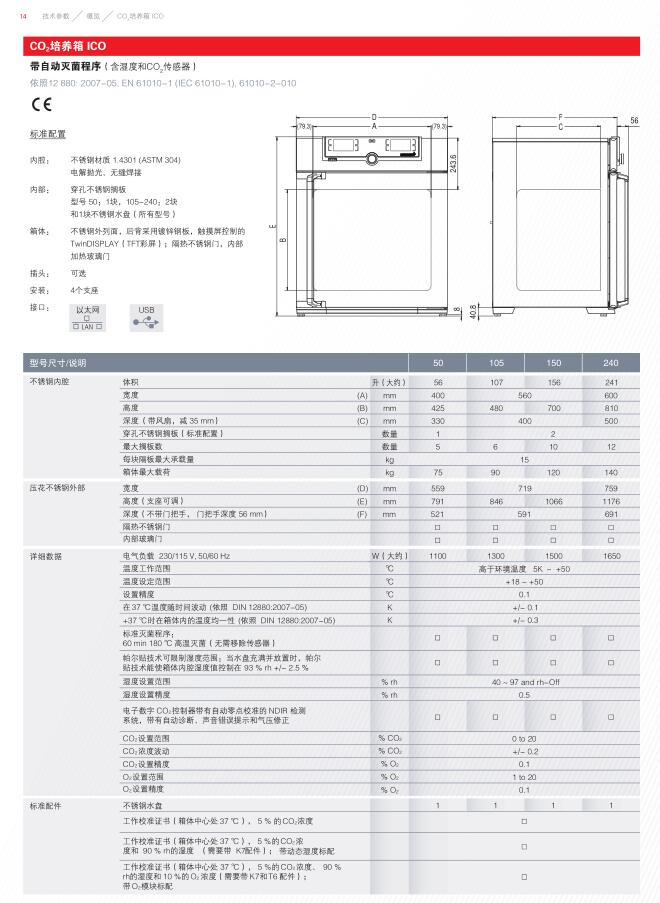 CO 2 培养箱ICO 在任何时候都能保障安全。高度现代化的CO 2 培养箱ICO是安全和用户友好型产品的完美解决方案:ControlCOCKPIT不间断电源技术,使ICO在电源故障情况下也能保持屏幕显示、数据记录和CO 2 浓度可控。所有记录的数据都符合FDA标准,而且,当CO 2 ,O 2 ,温度和湿度任一项超出限制范围,除了声音报警还会向手机发送报警通知(选配)。精确的控温技术使箱体内的温度能够准确的达到设定值而不会冲温。内腔圆角,清洁简便。整个箱体(包含传感器)都可以进行180℃下60分钟高温干热灭菌。